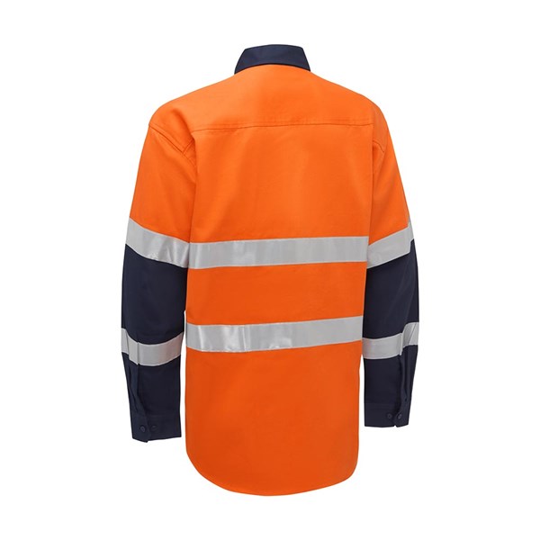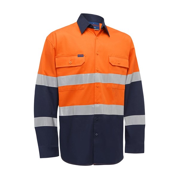 Akurra Hi Vis Long Sleeve Taped Shirt Cotton Drill 185gsm Orange/Navy