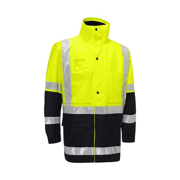 Akurra Hi-Vis 4 In 1 Poly Pu Coated Taped Rain Jacket Biomotion Hi Vis Yellow/Navy