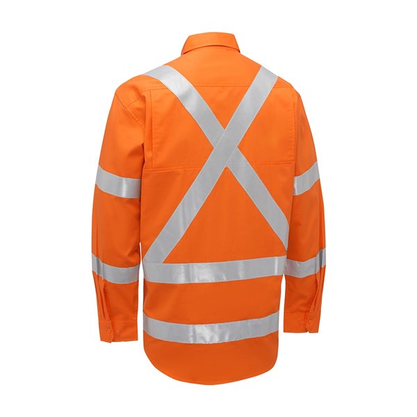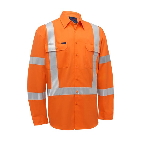 Akurra Hi-Vis Long Sleeve X-Back Taped Rail Shirt 145gsm Orange