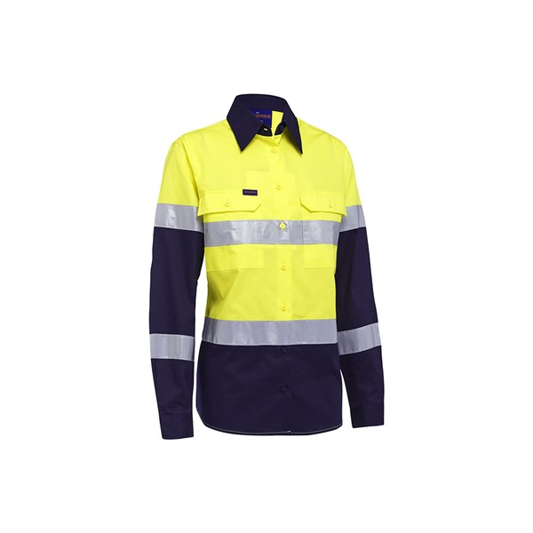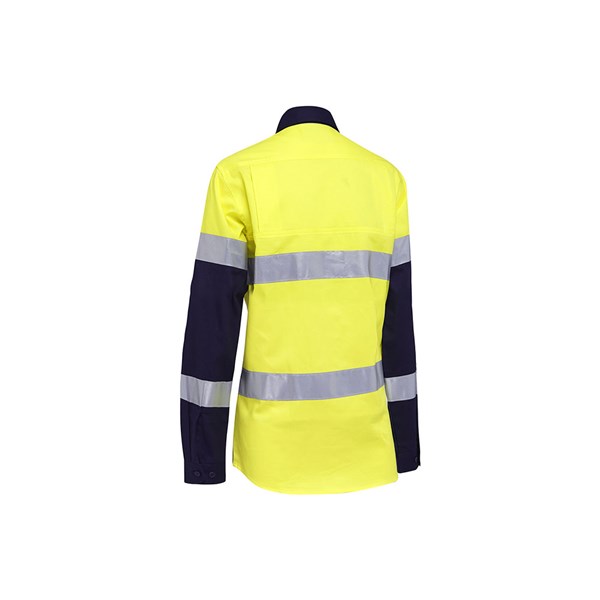 Akurra Womens Hi Vis Long Sleeve Taped Shirt Cotton Drill 145gsm Yellow/Navy