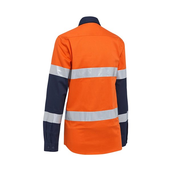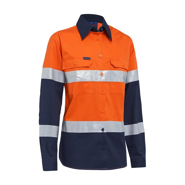 Akurra Womens Hi-Vis Long Sleeve Taped Shirt 185gsm Biomotion Orange/Navy