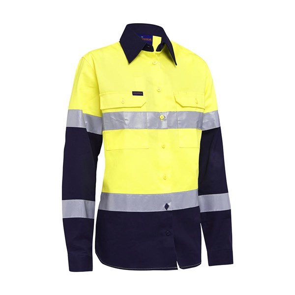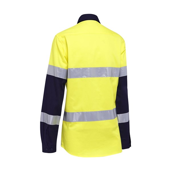 Akurra Womens Hi-Vis Long Sleeve Taped Shirt 185gsm Biomotion Yellow/Navy