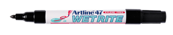 - Unique, xylene free permanent marker for wet surfaces. The unique ink formula in the artline 47 allows for clear marking of wet non-Porous surfaces such as metal, plastic, styrofoam, etc. even if underwater