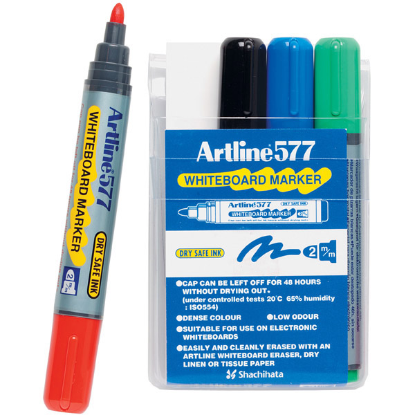 Artline 577 Whiteboard Marker Bullet Point 3mm Wallet 4