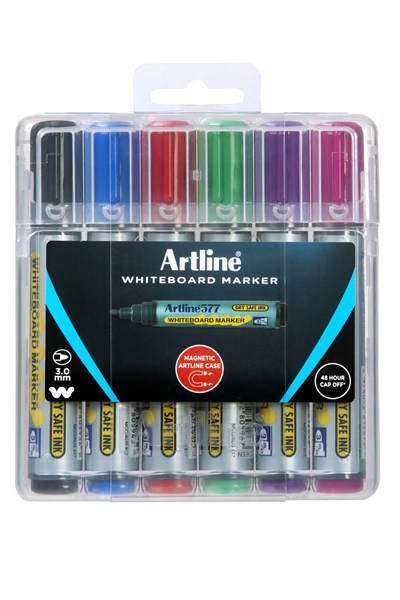 Artline Whiteboard 577 Markers Magnetic Hardcase Wallet 6 Asst