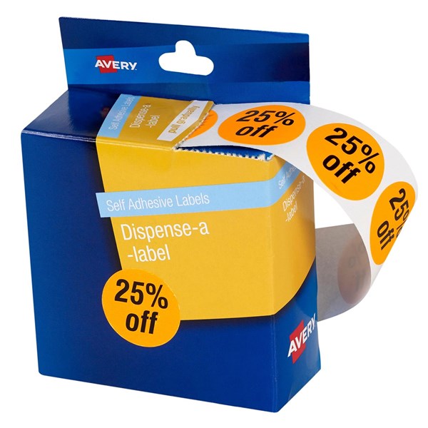Avery 25% Off Dispenser Labels 24mm Round Removable Orange 500
