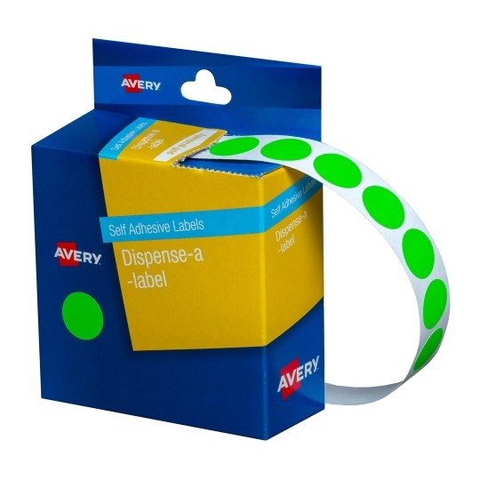 Avery Circle Dispenser Labels Removable 14mm Diameter Pk 1050 Fluro Green