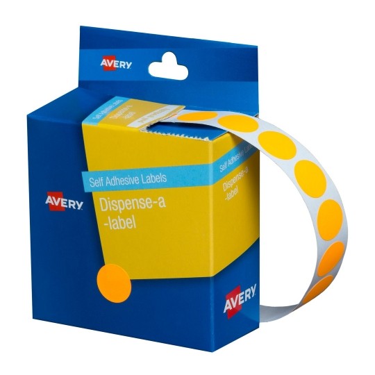 Avery Circle Dispenser Labels Removable 14mm Diameter Pk 1050 Fluro Orange