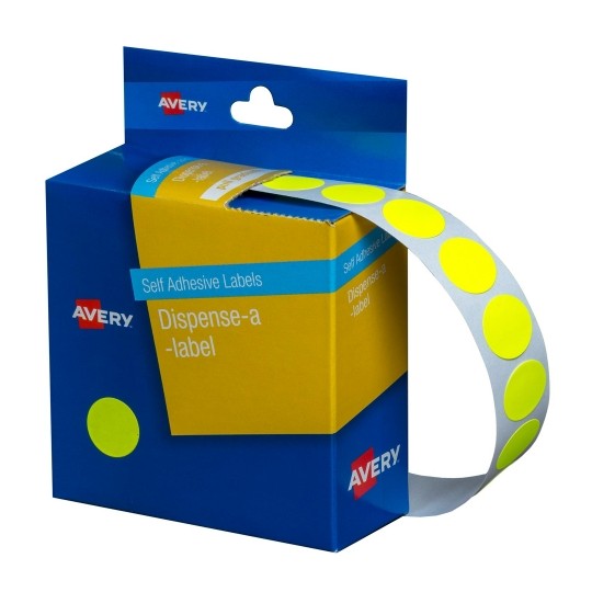 Avery Circle Dispenser Labels Removable 14mm Diameter Pk 1050 Fluro Yellow