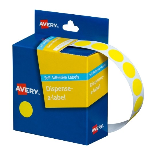 Avery Circle Dispenser Labels Removable 14mm Diameter Pk 1050 Yellow