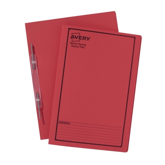 Avery Spiral Spring Action File Foolscap Red Black Print 85104 270G Pk 25