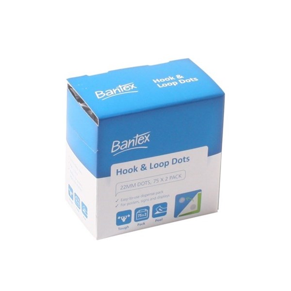 Bantex Hook And Loop Dots 22mmx1.8M White 75 Hook 75Loop