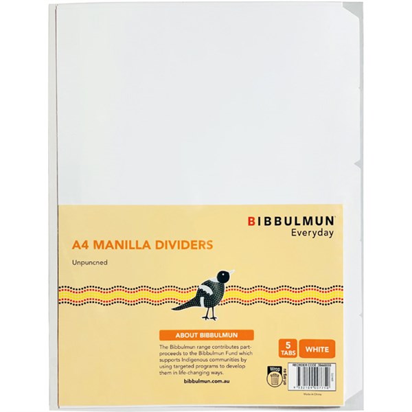 Bibbulmun Dividers Manilla A4 5 Tab Unpunched White