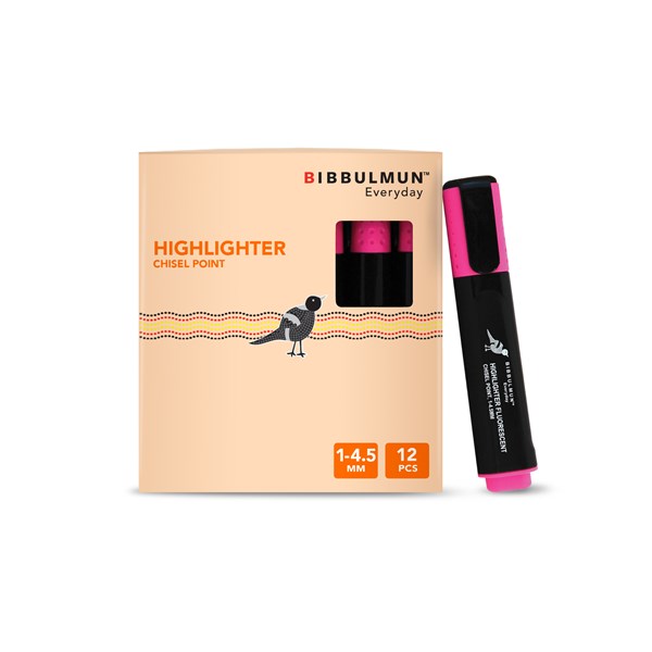 Bibbulmun Highlighter Fluorescent Chisel Point Box 12 Pink