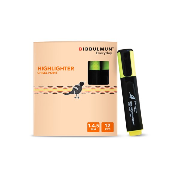 Bibbulmun Highlighter Fluorescent Chisel Point Box 12 Yellow