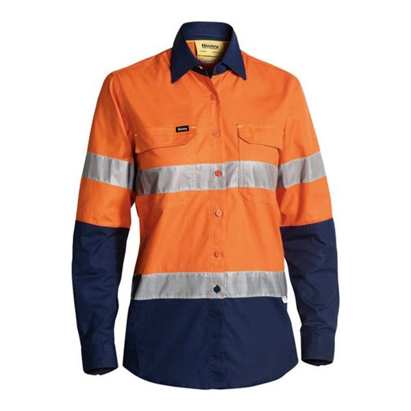 Bisley BL6415T X Airflow Women's Hi-Vis Ripstop L/Sleeve Taped Shirt 150gsm Orange/Navy