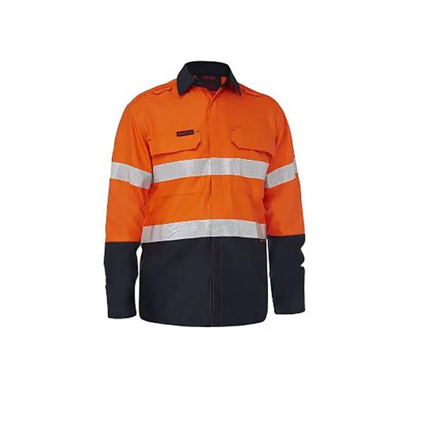 Bisley Shirt Apex 185 Taped Hi-Vis FR 185gsm BS8438T Orange/Navy