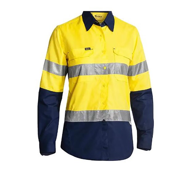 Bisley Shirt Womens L/S Cotton 150gsm X-Airflow 3M Tape Yellow/Navy BL6415T
