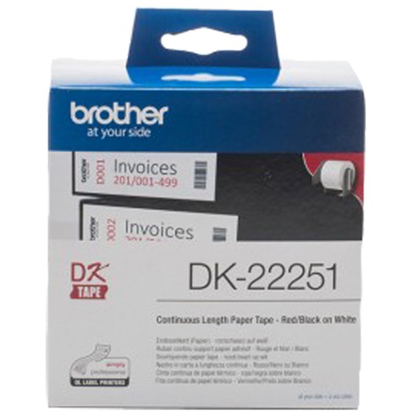 - Create custom-sized paper labels with both black and red print to suit any purpose with this genuine Brother Black and Red on White Paper Label Roll