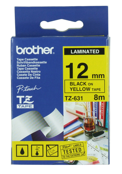 Brother TZE-631 Labelling Tape 12mmx8M Black On Yellow