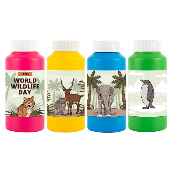 Bubbles in bottles holds 120ml liquid & includes a bubble wand. Assorted yellow, pink, green and blue bottles.