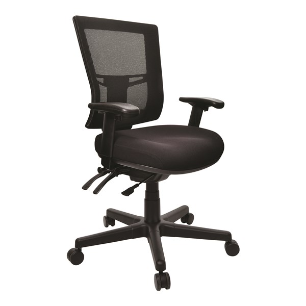 - Features : Height adjustable arms Adjustable seat height Ratchet height adjustable back/lumbar Independently adjustable seat tilt - free floating or lockable Independently adjustable back tilt - free floating or lockable Depth adjustable seat slide High density polyurethane moulded foam seat Black Nylon base Meets Australian/New Zealand Standard AS/NZS 4438:1997 - Height Adjustable Swivel Chairs 60mm Castors Supported by the internationally recognised Global GreenTagCertTM*