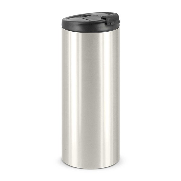 Premium 400ml double wall, vacuum insulated stainless steel cup which will keep drinks hot or cold for approximately six hours. It has a secure screw on lid with a flip closure. The black and white cups laser engrave to a shiny steel finish and the silver cup engraves to a natural etch. Capri is BPA-free and is presented in a black gift box. This product is not dishwasher safe and handwashing is recommended.
