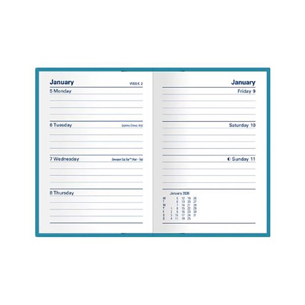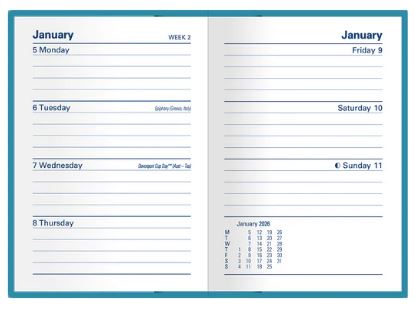 - Printed on white paper, the range includes appointment times, a six month to opening calendar on each dated page layout, week numbers, Julian days, Australian and New Zealand holidays.