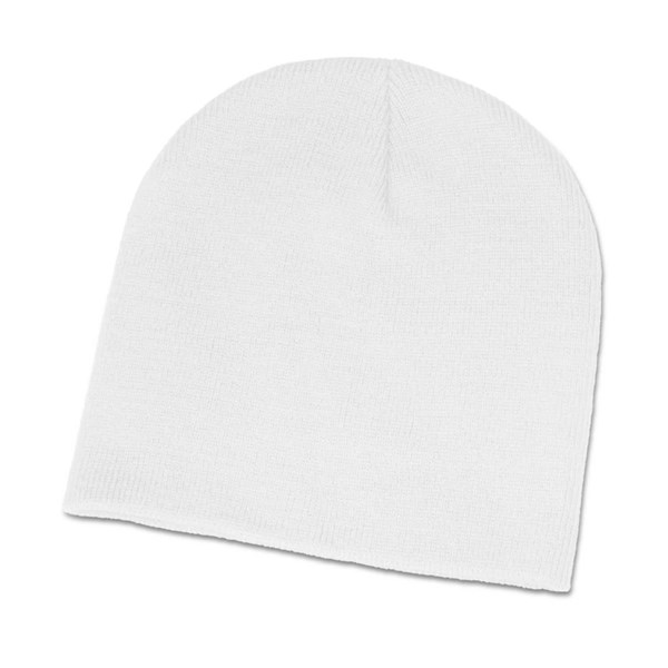 Warm close-fitting beanie knitted from acrylic yarn. Available in one size which will fit most people.