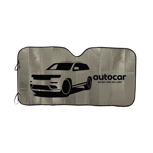 Protect your car's interior with our Concertina Metallic Car Sunshade. This bubble foil sunshade features a concertina design for easy installation and storage. Available in silver with a stylish black contrast trim, it includes two black elastic loops for secure attachment. Perfect for keeping your car cool and shielded from harmful UV rays, our sunshade is a must-have accessory for any vehicle.