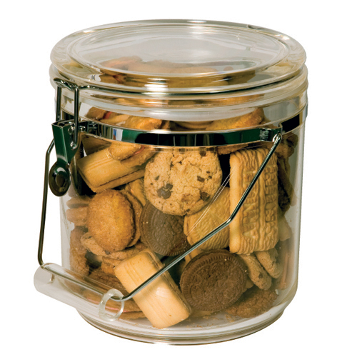 - These durable canisters are made from strong, clear acrylic material with chrome clip for airtight sealing and handle