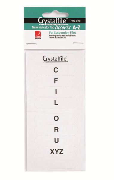 Crystalfile Indicator Tab Inserts A-Z White Pack 60