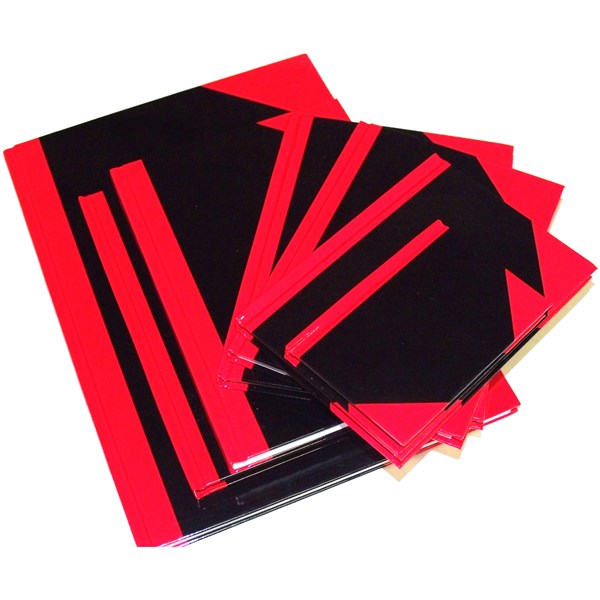 - The Red & Black Gloss hardcover casebound notebook features 200 feint ruled (100 leaf) fine white pages, indexed A-Z