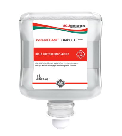 - InstantFOAM™ Complete PURE is a highly effective foaming hand sanitizer that kills most common germs in just a matter of seconds. The InstantFOAM™ hand sanitizer formula allows more control over the product by preventing dripping and provides more hand washes than liquid hand sanitizer.