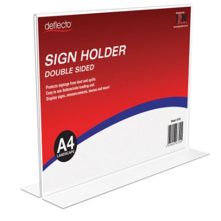 - The Deflecto Double-Sided A4 Landscape Sign Holder allows you to display signs, menus, announcements, promotions and more.