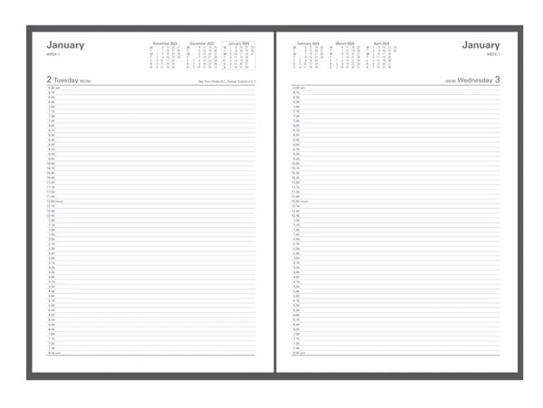 - The Appointment Diary is bound in a soft-look burgundy cover, section-sewn for extra strength and with times printed clearly down each page.