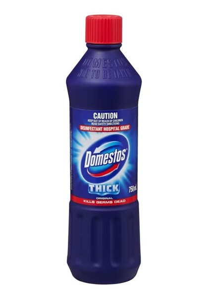 - Domestos thick bleach removes dirt, mould and odours from homes, offices and buildings.