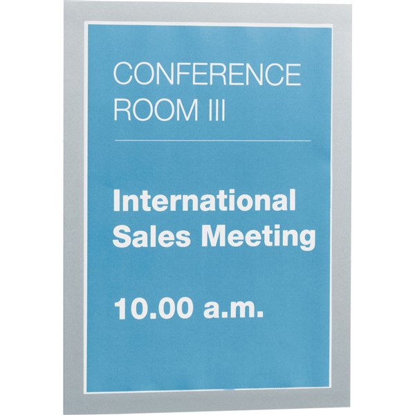 DescriptionSelf - adhesive frame with magnetic front panel. Allows for quick and easy exchange of information materials through fold - back magnetic frame. Can be used in either portrait or landscape format. Can be affixed to solid surfaces and removed again, e.g. from glass. For information materials in A4 fo