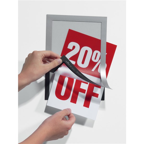 Duraframe Sign Holder A5 Adhesive Back Silver 2 Pack