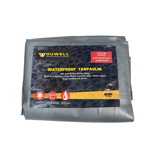 Duwell Extra Heavy Duty Tarpaulin Silver/Black 3.6 X 4.8m ( 12' X 16')
