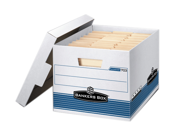 DescriptionMedium duty box with double bottom, double end, single side construction offers greater stacking strength than other brands and is ideal for storage with or without shelving. Reinforced hand holes resist tearing. Locking lift-off lid stays in place to secure box contents.