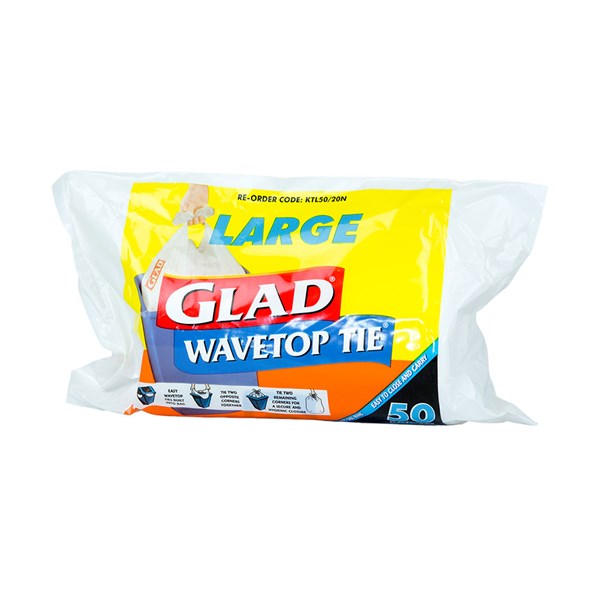 Glad Kitchen Wave Top Bin Liner Tie Bags 36L 20 x Pk 50