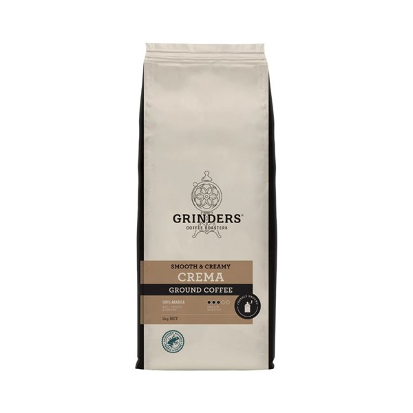 - Enjoy Grinders sensationally smooth and creamy Crema blend, crafted by their master roaster with notes of cocoa, malt and honey.
