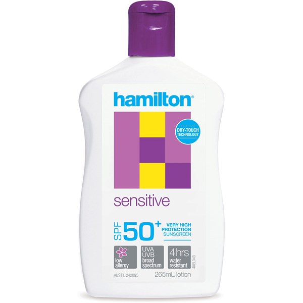 - Hamilton Sensitive SPF50+ Lotion is sweat resistant, perfect for all sporting and outdoor activities