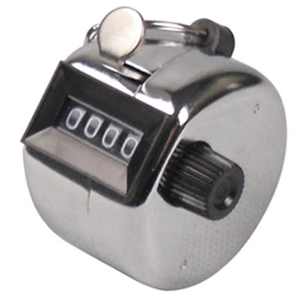 - Four digit, stainless steel tally counter with the capacity to count to count up to 9,999