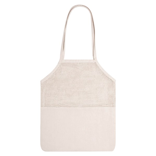 This stylish unbleached 280g natural cotton mesh bag with 2 long handles and bottom gusset which can be comfortably carried over shoulder it is reusable and helps you reduce your plastic consumption when shopping.