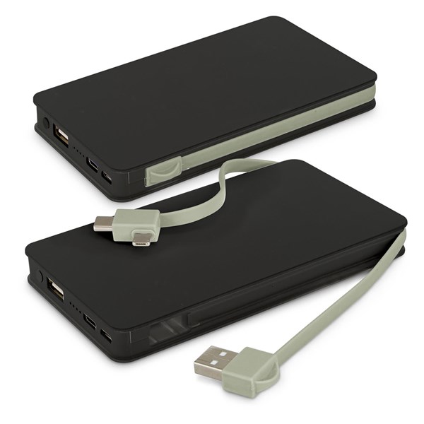 State-of-the-art 10W wireless charging power bank that can charge two devices at once. It will charge devices that are enabled for wireless charging simply by placing them on top of the power bank. It also offers conventional charging for almost any phone with a wraparound cable that fits neatly into the housing. It has a Type-C connector and a unique double-sided connector with Lightning on one side and Micro-B USB on the other. The cable is als