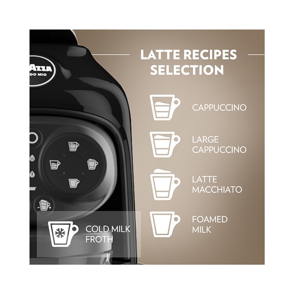 • There are 5 preset milk-based options and 4 different serving sizes to choose from.