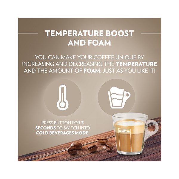 The Lavazza Deséa Coffee Machine is an easy to use, elegant piece to add to your kitchen or tearoom. It features an integrated milk frother and an innovative One Touch Barista interface. You can personalise coffee using the temperature boost button and the milk foam boost so you can make it just how you'd like.