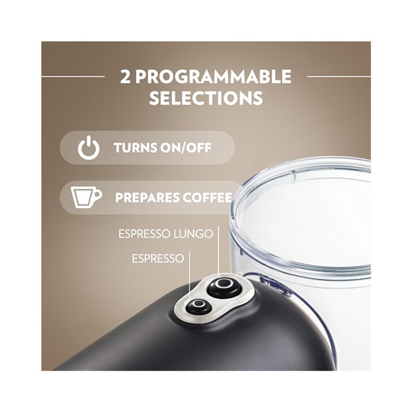 - The machine boasts 2 programmable selections (classic espresso or lungo) thanks to the double delivery button.